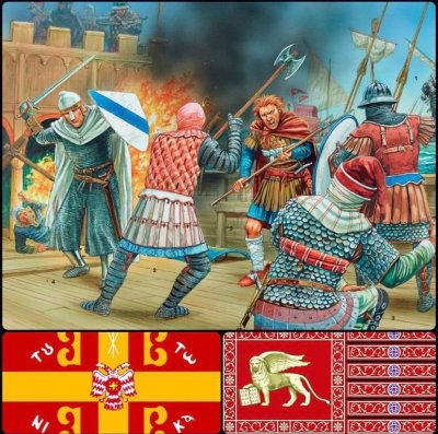 Emboldened by their victory at Neopatras the set upon the Roman fleet, which was now stuck in the Gulf Volos. A victory, combined with the battle of Neopatras, wold serve to completely defeat the Romans. The Emperor had sent a large fleet of 73 ships, the largest Roman navy since the days of Manuel Komnenos. But now the Romans had to face fearsome and superior Venetian ships from Crete!