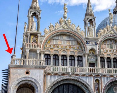 This is a description from the University of Oxford’s Last Statues of Antiquity – “The porphyry head is set into the balustrade at the south-western corner of the exterior balcony of the basilica of San Marco in Venice, near the famous bronze horses and not far off a vertical line above the group of the Tetrarchs, embedded in the corner of the wall of the church treasury. All these spolia were almost certainly looted by the Venetians in Constantinople during the Fourth Crusade of 1204. In late medieval and renaissance Venice the head was popularly known as ‘Carmagnola’ after the nickname of the comandante di ventura Francesco Bussone, who was accused of being a traitor and beheaded in the “Piazzetta di San Marco” on May 5, 1432. The portrait soon developed a life of its own, inspiring legends and moralizing tales of greed, conspiracy and murder. As late as 1611 the Venetians were still using the porphyry column drum (“Colonna del Bando”) below the ‘Carmagnola’ to exhibit severed heads of traitors”