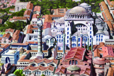 The Augustaion was an enclosed area, kind of like a private forum, south of the Hagia Sophia. The Augustaion is said to have been first created by Constantine the Great, who put a statue of his mother Saint Helena there upon a column. But the Augustaion was changed a couple times after that, first in 459 and then during the 6th century during the reign of Justinian who built the Hagia Sophia. It became like a private courtyard of the Hagia Sophia, and remained a feature of the city throughout Byzantine history.