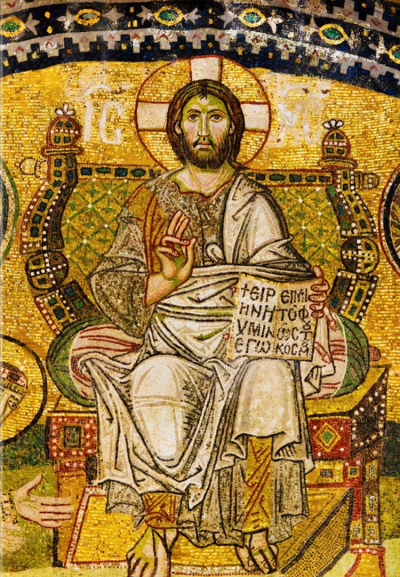 The Leo VI mosaic is fascinating because it is more complex than other mosaics in a certain sense. Not in its the quality of the mosaic itself in terms of artistic ability, but in terms of its identity and meaning. This mosaic is usually and probably correctly identified as Leo VI, also known as Leo the Wise” (Λέων ὁ Σοφός) who ruled from 886-912. It is located in the apse above the Imperial door, which is according to tradition made of wood from Noah’s Ark. In this mosaic, it has Christ enthroned in the middle. He has his right hand raised for blessing, and his left hand rests on his left knee holding a holy book. The inscription translates to “Peace to you, I am the light of the world.” On each side of Christ are two unlabeled portraits. One is clearly the Theotokos, and the other an unidentifiable Angel. The left side of the mosaic shows the Emperor Leo, in a prostrate position raising his hands towards Christ. The right side is unusually empty. The meaning of this work of art can be interpreted differently.