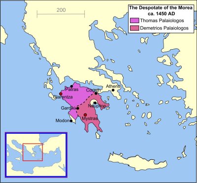 After the Fall of Constantinople in 1453, the Despotate of the Morea kind of awkwardly lingered on as a rump state, and in submission the Ottoman Empire. It’s rulers were the brothers of the fallen hero Constantine XI Palaiologos, but they were nothing like him. They were squabbling men without his dignity, ambition, or wisdom. This is why Constantine XI had been chosen to be emperor, and not them.