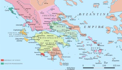 The Peloponnese had been part of the Roman Empire for over a millenium. However, after the Fourth Crusade, it was conquered by the Crusaders and Venetians. This led to the founding of the Principality of Achaea, which controlled nearly all of the Peloponnese.